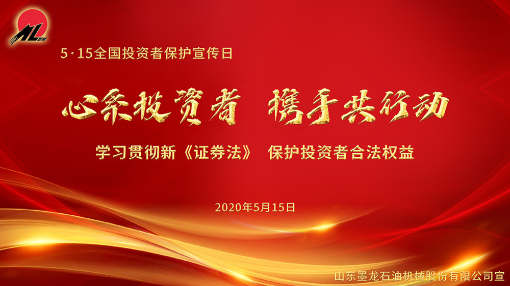為做好“5.15全國投資者保護宣傳日”的投資者保護宣傳,山東墨龍(002490)積極響應(yīng)山東證監(jiān)局號召,以“心系投資者,攜手共行動—學(xué)習貫徹新《證券法》,保護投資者合法權(quán)益”為活動主題,開展投資者保護宣傳活動。公司將持續(xù)加強公司信息披露質(zhì)量、增加公司透明度,積極開展投資者互動溝通工作,營造良好的投資者關(guān)系氛圍,增進投資者對上市公司的了解,全方位引導(dǎo)投資者樹立正確投資理念,更好地維護投資者的合法權(quán)益。